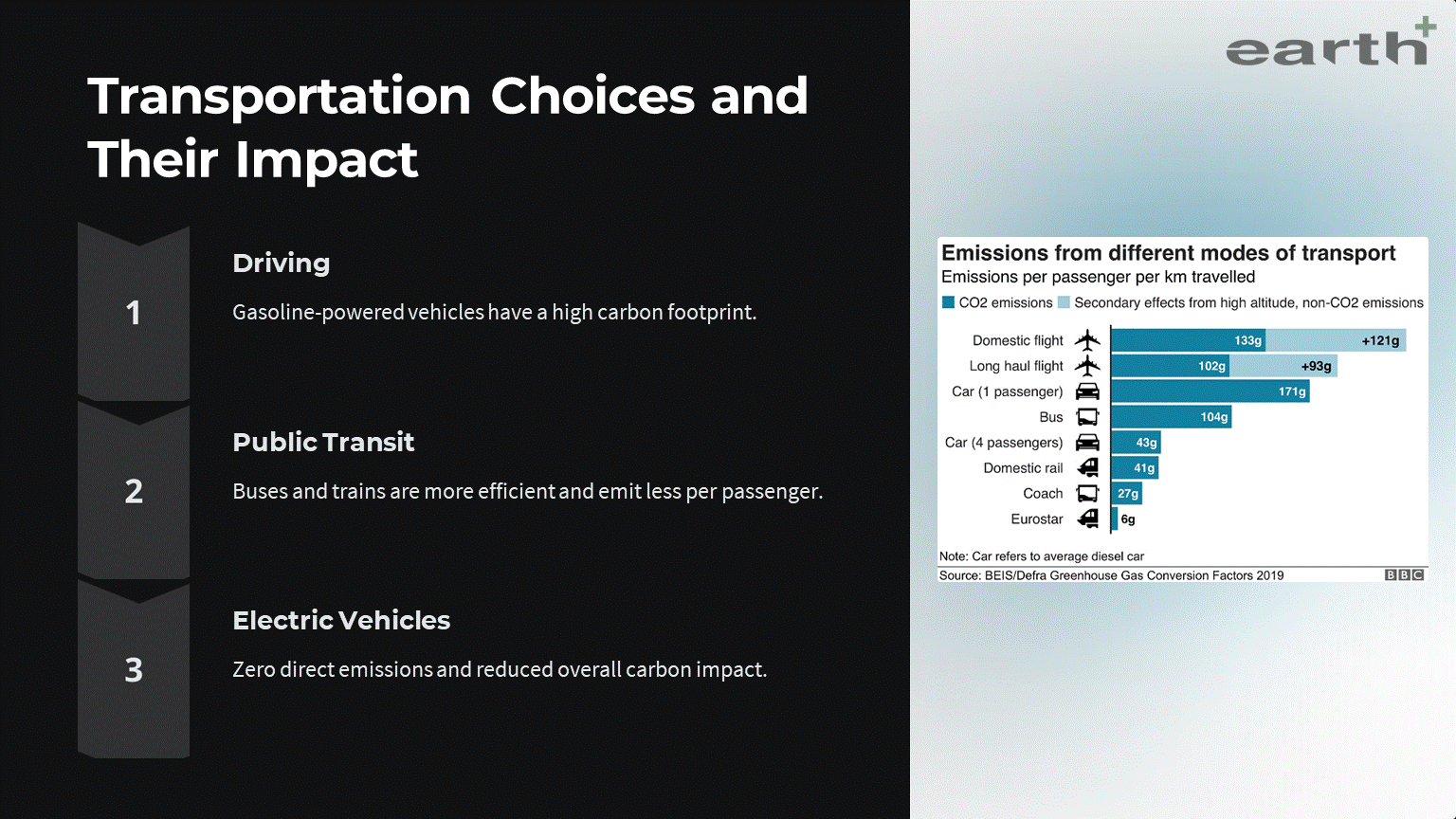 Transportation Analysis: Calculate the carbon emissions resulting from your mode of transportation – whether it's by car, public transport, bike, or foot. Your daily commute and travel choices significantly contribute to your PCF. Could carpooling, biking, or using public transport be viable alternatives to reduce your carbon footprint?